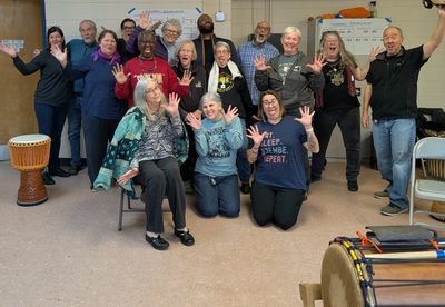 Ben Weston, Chuck Cogliandro, and I were thrilled with the full-day workshop we offered at Tucker Recreation Center last Saturday. Fifteen adventurous rhythm explorers (pictured above) joined us for a day immersed in Balakulanya, led by Ben in the form he learned from Bolokada Conde. Stay tuned for an announcement about Joy of Drumming #7 next spring.