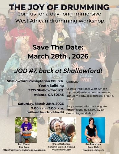 To register for Joy of Drumming #7, please visit: https://www.kumandi.com/groupclasses.htm